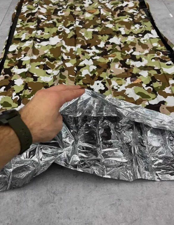 Цей термоспальник створений для збереження тепла навіть у найскладніших умовах. Він не пропускає вітер і вологу, а внутрішній шар ефективно утримує температуру. Завжди готовий до використання, компактний і надлегкий. Особливість: матеріал спальника маскує теплову сигнатуру тіла, захищаючи від спостереження тепловізорами та знижуючи ймовірність виявлення комарами.
